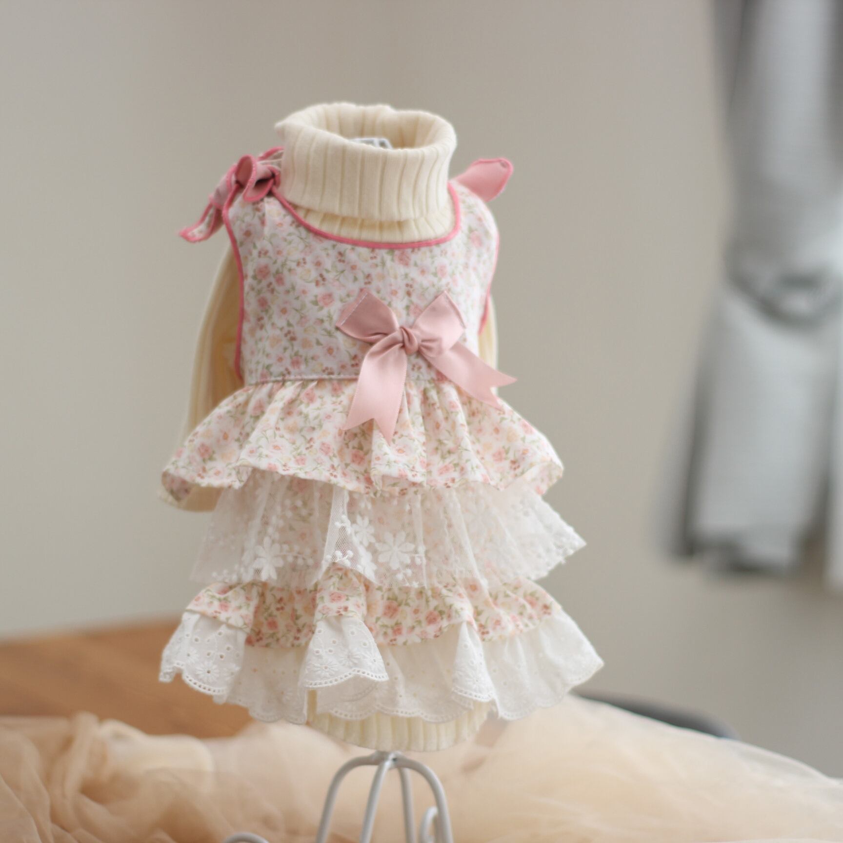 1枚で着せてもいいのですが、まだまだ寒いので中にタートルインナーを着せたり少し暖かくなればレースのブラウスを着せたら可愛さUPします。