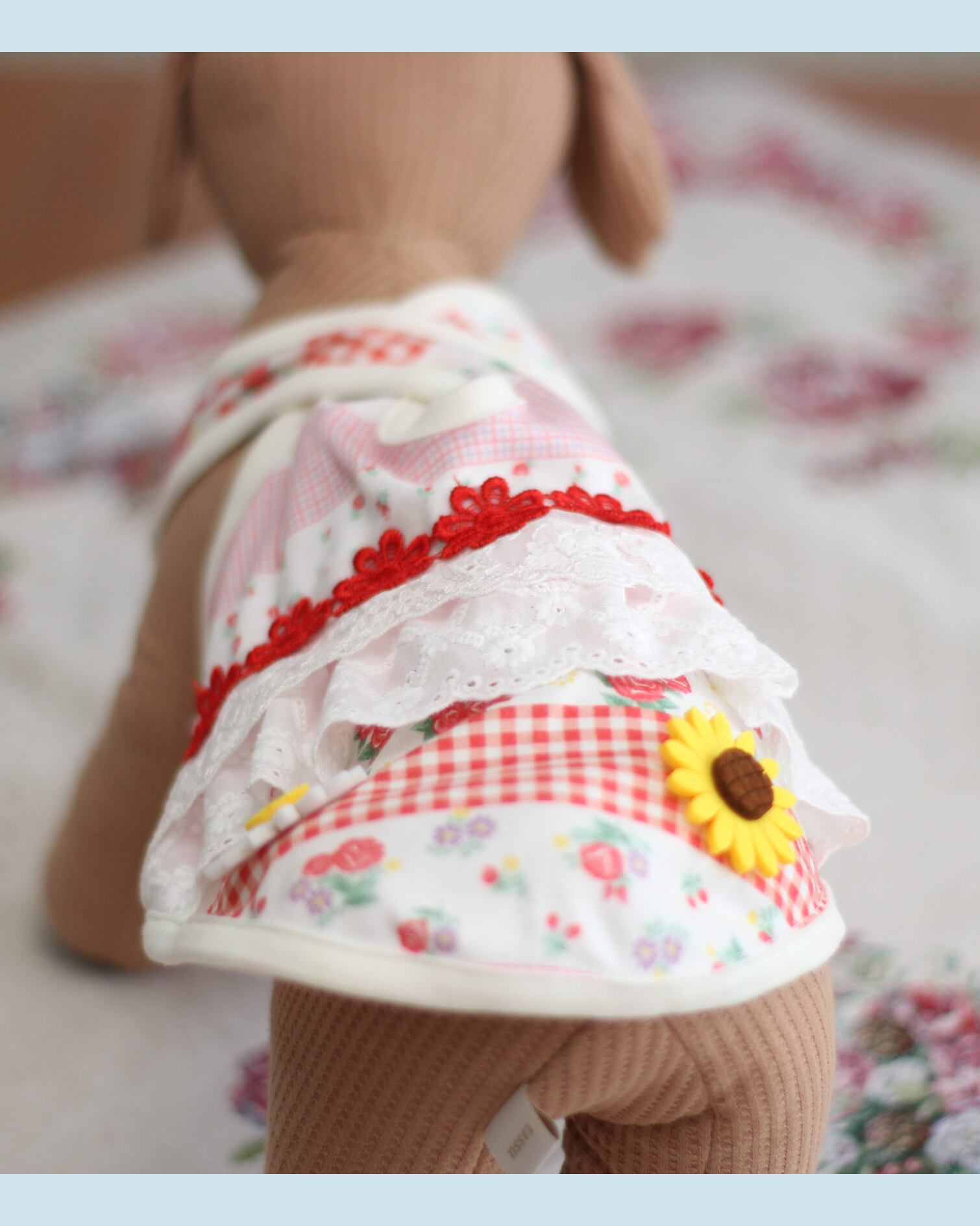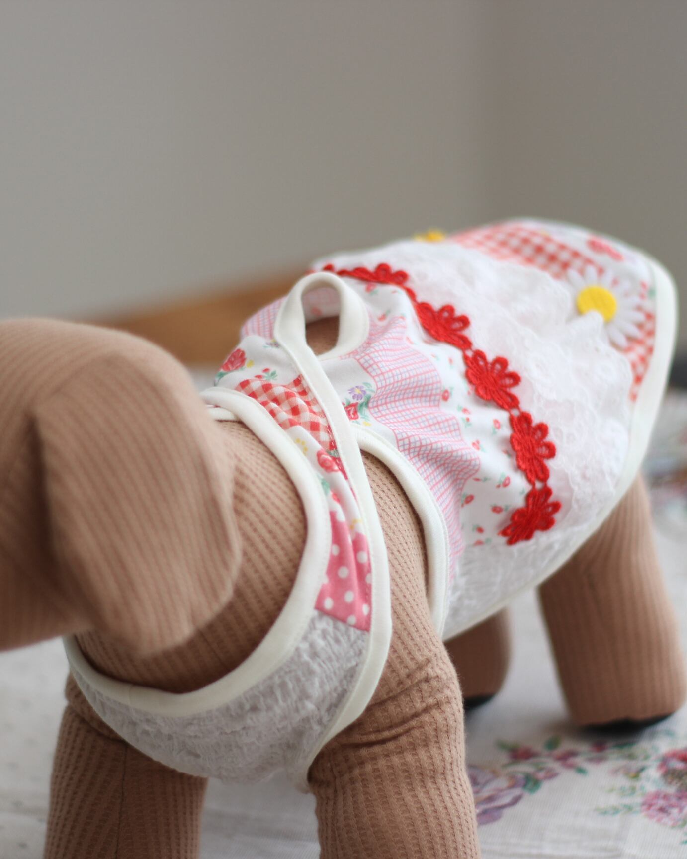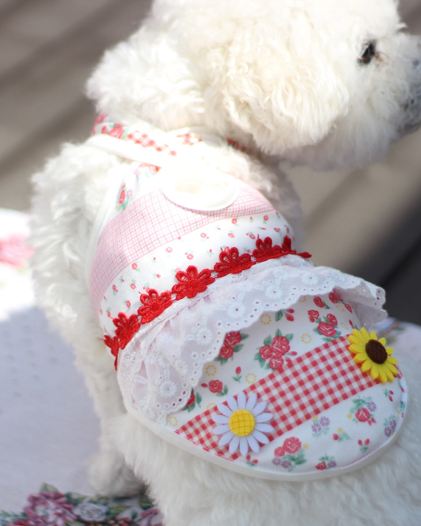 強風でひなこが拒否をしたので、まるぷーに着せたら少し小さくてピチピチですが、イメージだけでも。