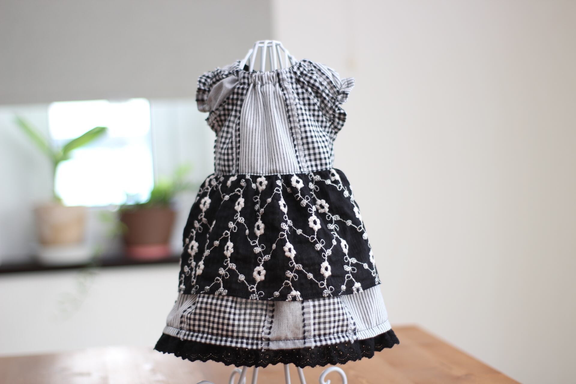 チェックとストライプのワンピース