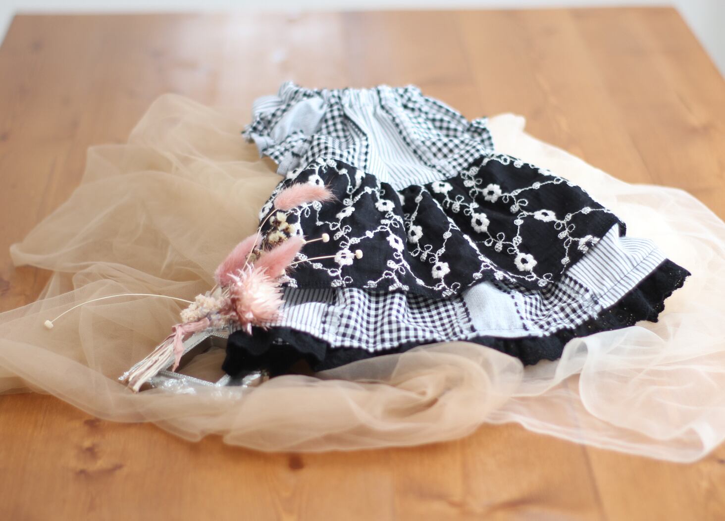 エプロン部分には黒地の豪華刺繍生地。