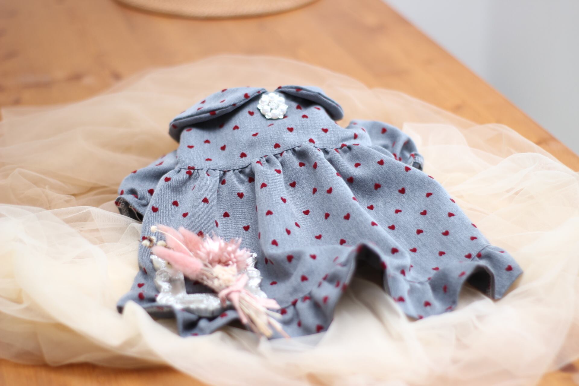 ベルベット地のハート柄が特徴のしわになりにくい柔らかな生地感。