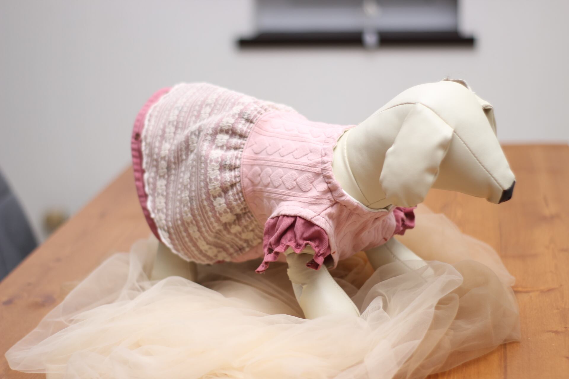 お腹部分のハート柄ニットは伸縮があります。
