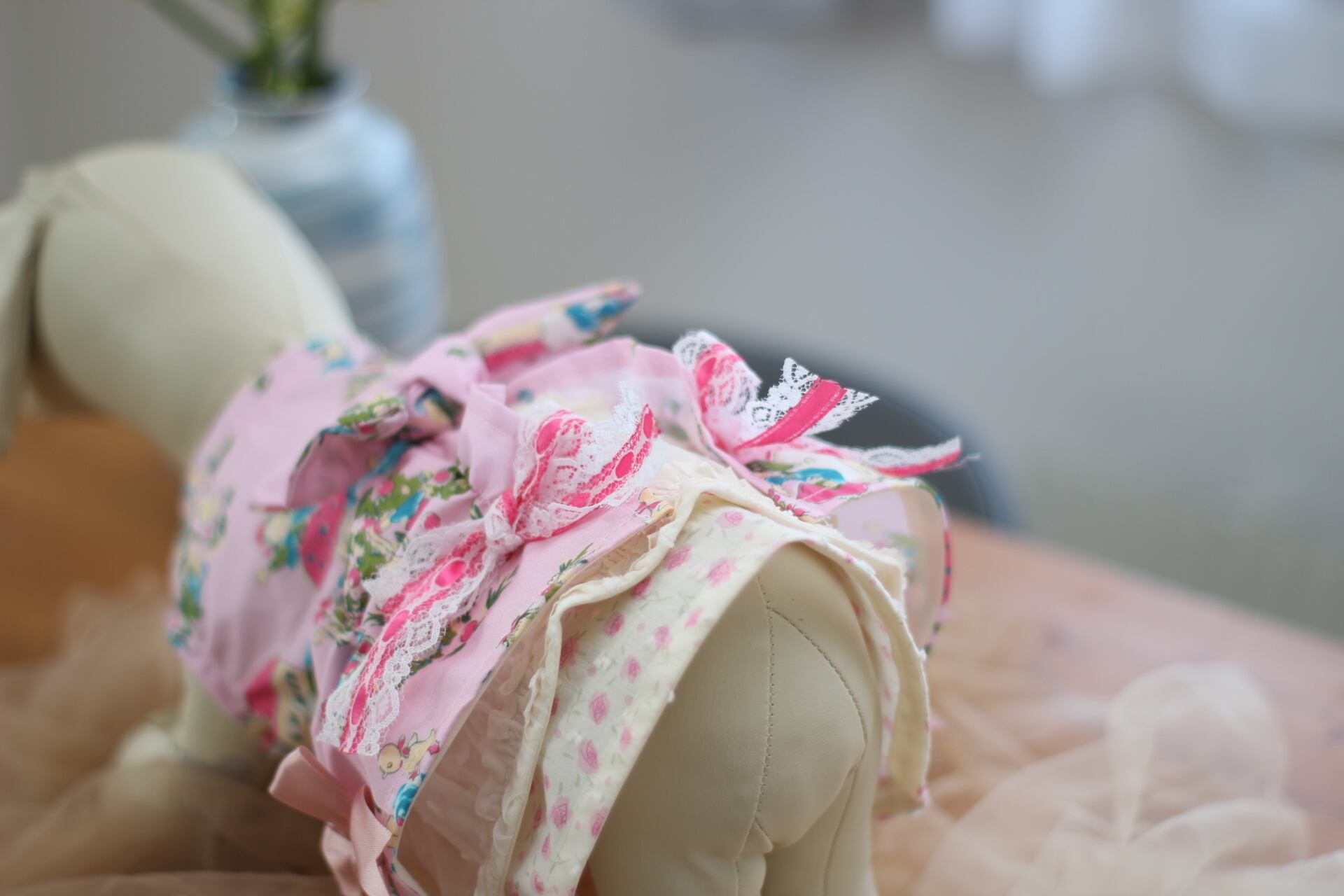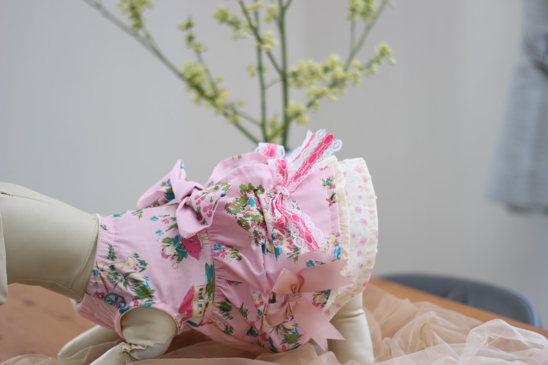 おリボンは腰の大きなもの以外は縫い付けになります。