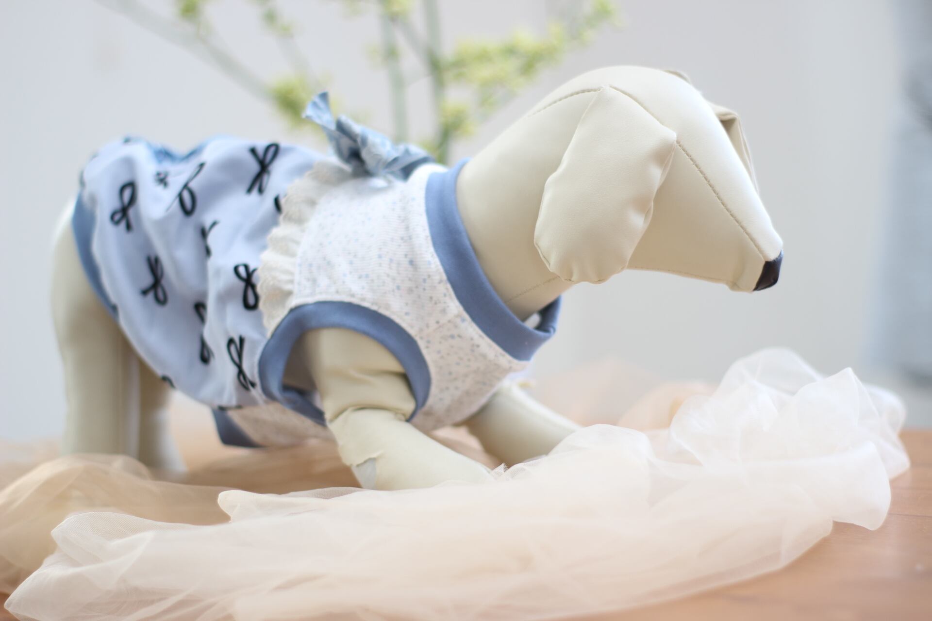 背中部分にはレースデニムとリボン柄生地の切り替えで可愛らしさをアップしています。