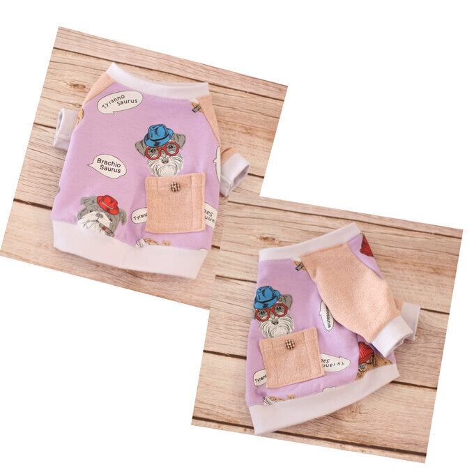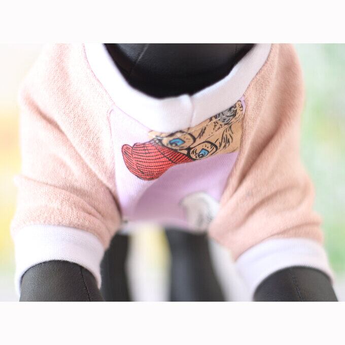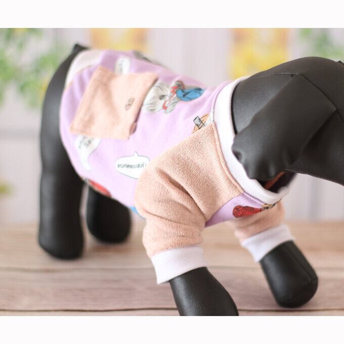眼鏡をかけた可愛いわんこ柄のミニ裏毛のトレーナー。