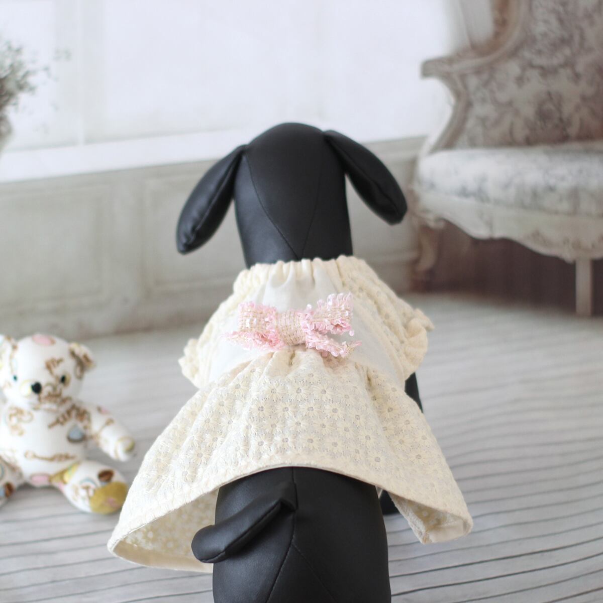 犬服 ダブルガーゼのマーガレット刺繍ワンピース