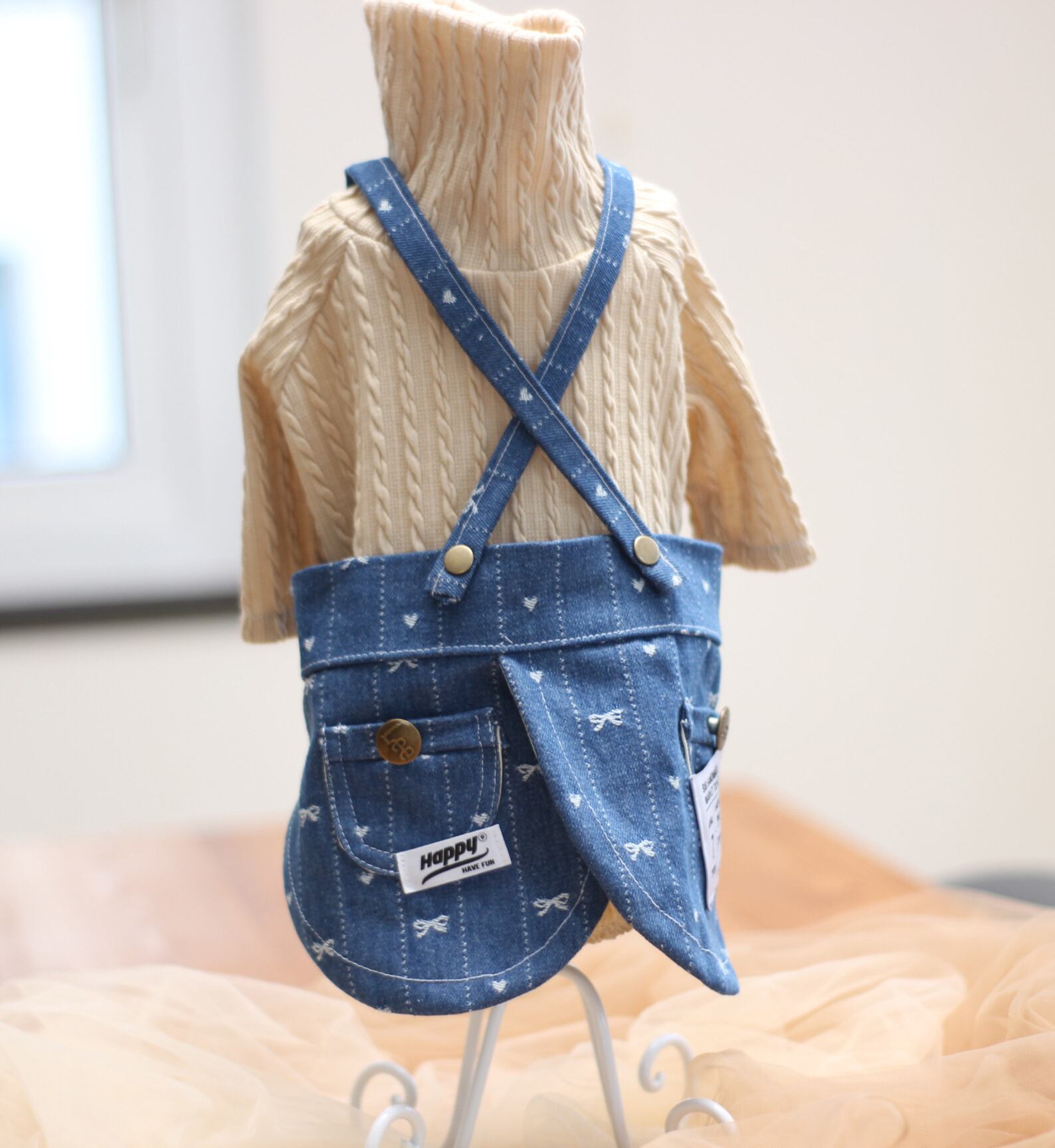 刺繍デニムのエプロン風のスカートで、あなたのスタイルに特別なアクセントを加えましょう!